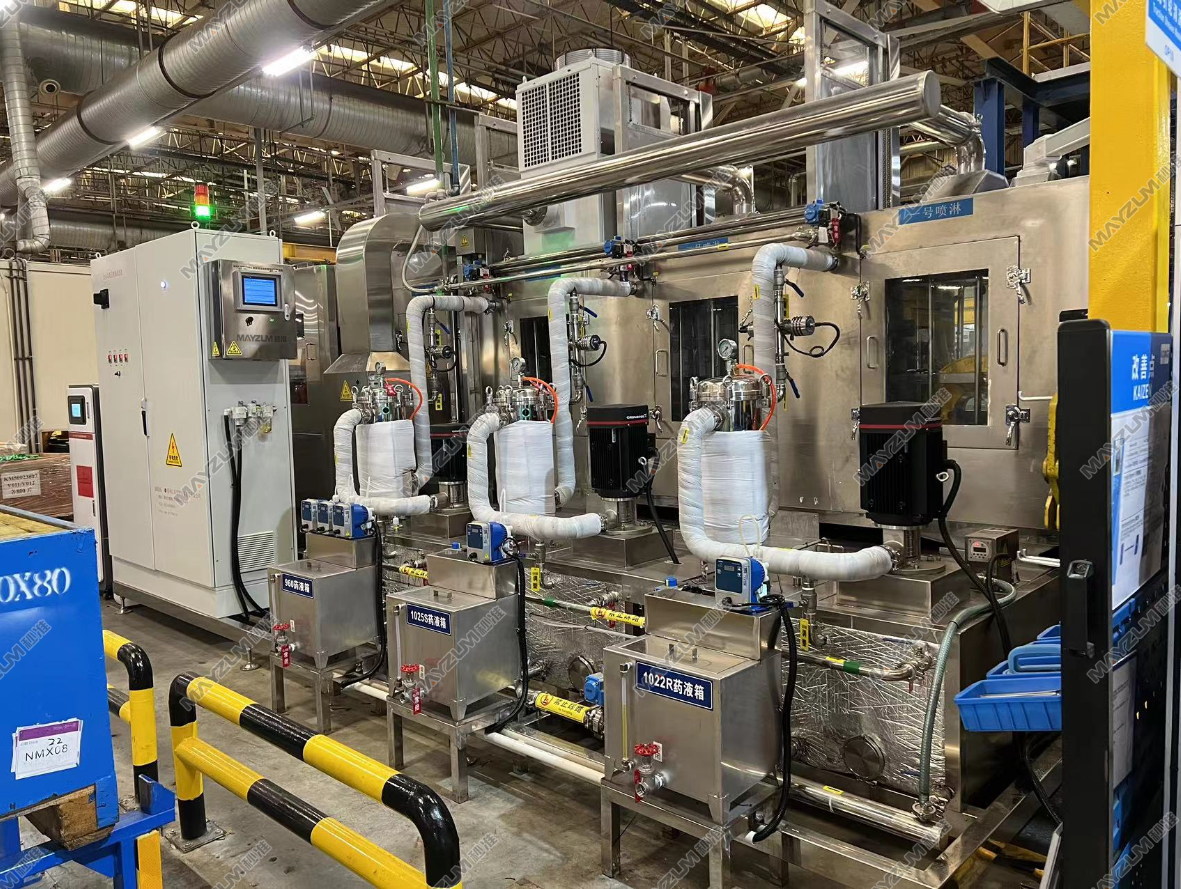 秒準 MAYZUM 一拖(tuo)多在線(xian)清(qing)洗(xi)劑濃度(du)測(ce)控系統創造性滿足多清(qing)洗(xi)槽同步監控需求,集(ji)(ji)成(cheng)濃度、PH、電導率、溫度監測及自動(dong)配液等功能,顯著降(jiang)低設備投入成(cheng)本。系統與企業 MES 系統互聯,實(shi)現(xian)清洗過(guo)程(cheng)數據(ju)自動(dong)采集(ji)(ji)與報(bao)表生(sheng)成(cheng),提升生(sheng)產管理效率。