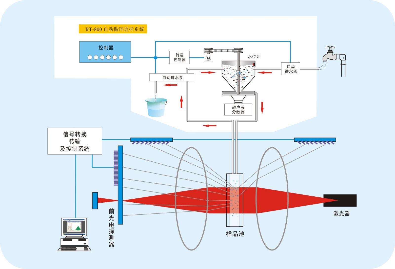 BT-9300S激光粒度儀是一種具有自動對中、自動進水、自動水位測量、循環流量可調功能的自動化程度更高、使用更方便、性能更好的粒度分布儀。它采用進口的光纖半導體激光器,功率大、壽命長、單色性好;采用國內外首創的單光束雙鏡頭技術及專門設計的由大規模集成電路工藝制造的大尺寸高靈敏度光電探測器陣列分布于前向,側向及后向;采用離心循環泵和微量樣品池兩種進樣方式;采用全程米氏理論和多種分布模型的數據處理方式;采用高精度的數據傳輸與處理電路等一系列先進的技術和制造工藝,使該儀器具有準確可靠、測試速度快、重復性好、操作簡便等突出特點,是集激光技術、計算機技術、光電子技術于一體的新一代粒度測試儀器。特別適合企業、高校、研究院所等實驗室選用。
