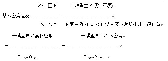 :一塊肉眼可見的已吸水木材樣品的基本密度是應用阿基米得原理加以測量。以下是實際的處理順序: