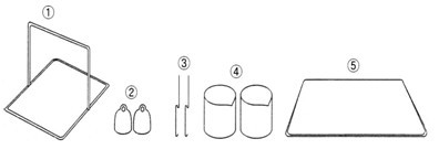 ①液體專用架、②玻璃砝碼、③掛鉤、④50㏄燒杯、⑤支撐板、⑥QL-120G主機