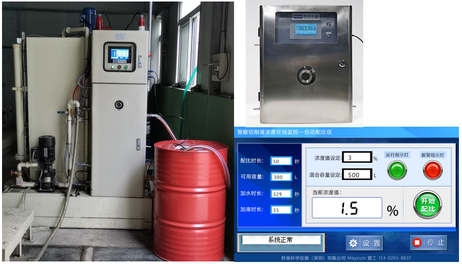 簡介:秒準(Mayzum)MAY-3018-ACF智能切削液濃度自動配比儀(自動配液系統)適用于加工中心、數控機床、連體機床等高精密加工設備配套切削液的一種全自動配液裝置;。用戶收到設備只需要接入原液管和清水管,在配比系統中設定好需要配比的濃度和液體容量,點擊“開始配比”,系統自動按用戶設定參數進行原液和清水的混配,無需對現場進行任何改造,即插即用,全自動補液,智能化全自動配比供液,無需人工干涉。
