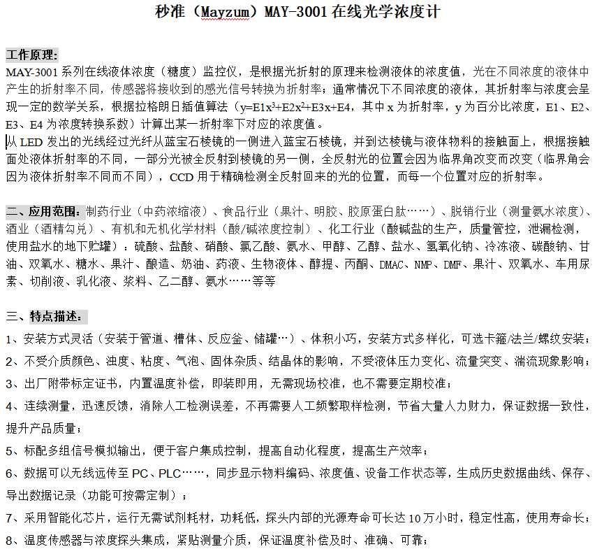 檸檬酸溶液比重、濃度在線監測儀MZ-CA-ON-LINE