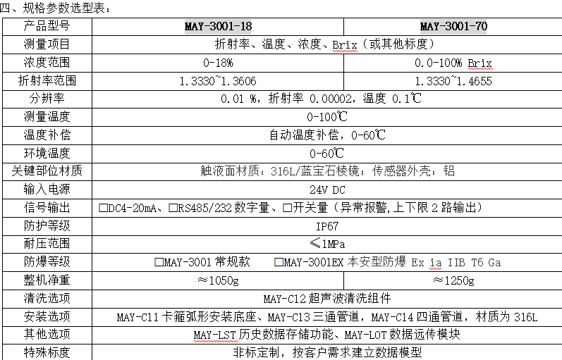 型 號:MAY-3001